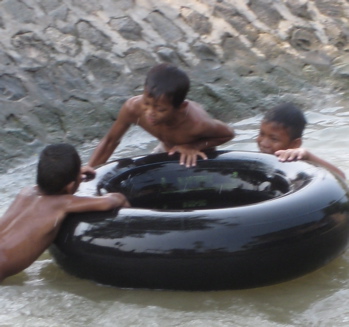 Some boys swim in the “river”. This is also where they bathe, wash their clothes,