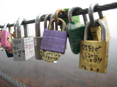 thier girlfriend/boyfriend and place a lock with their names on as a way of showing