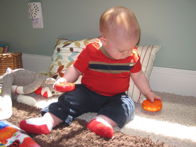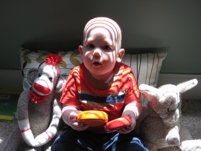 I love how the shadows from the window fall across Nash’s face. i also like that his two best pals “Frank the Elephant” and “Judd the Sock Monkey” happened to get in on the photo time.