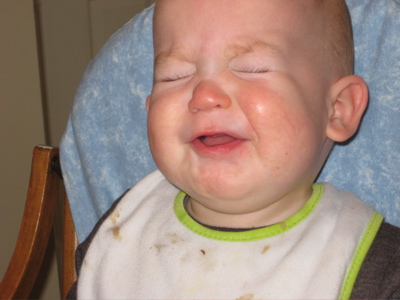 This is the HILARIOUS face that Nash makes when either something itches on his face during meal time and he knows he isnt allowed to touch his face during meal time…or he thinks you are about to wipe his face. Cracks me up every time!