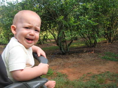But blueberry picking gets boring when mom won’t let you taste the blueberries…or leaves…or grass…or dirt. So Nash got a little fussy…