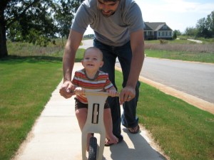 After lunch, Bryson took Nash for his first spin on his wooden…yes, wooden…bike with no pedals (who makes such a bike?). Nash loved it.