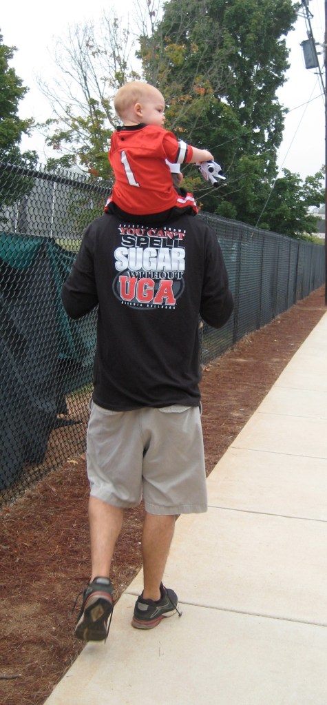 On his way to his first ESPN College Game Day… (yep, thats a full Georgia uniform! Oh my!)