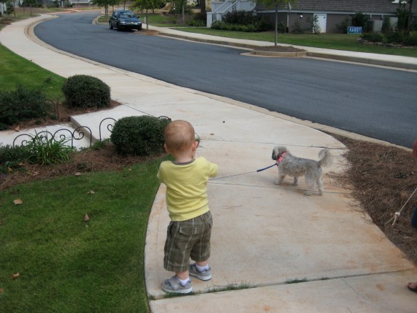 Nash took his new best friend Maggie (Mimi’s dog) for a walk. Oh how he loves dogs.