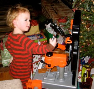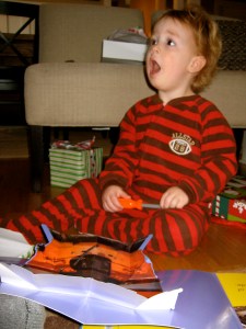 Opening gifts is serious business. Thank goodness Nash had a new tool handy.