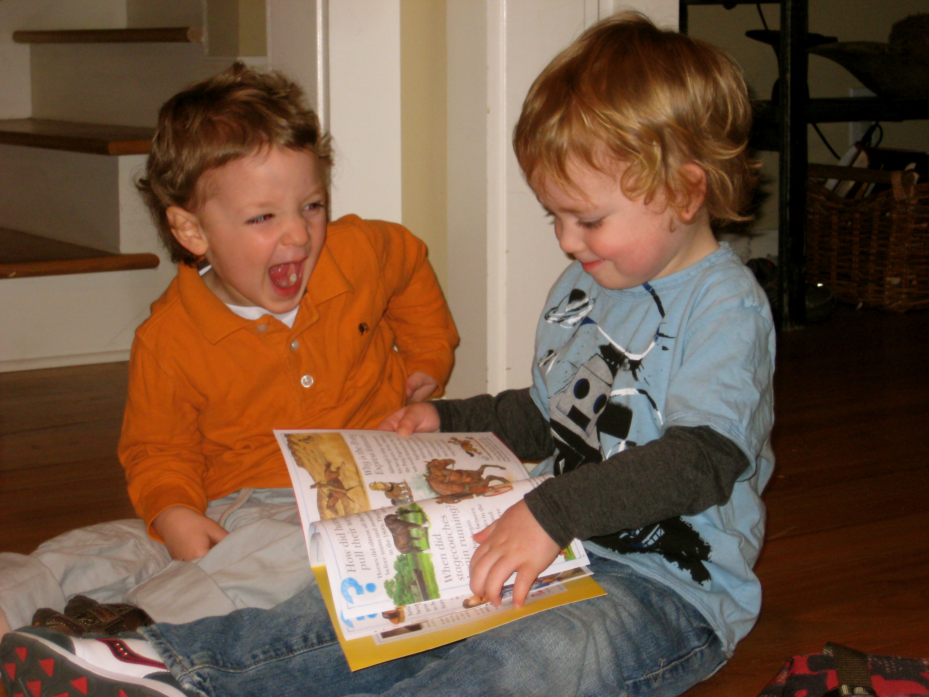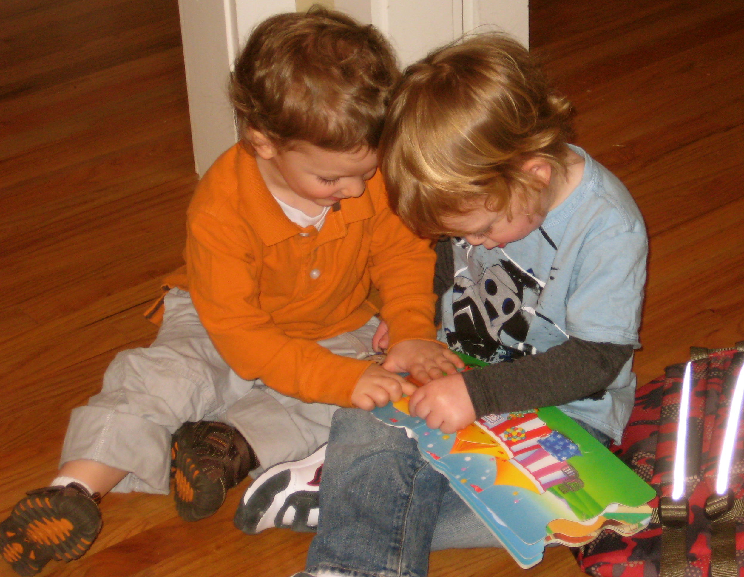 This picture makes them look like little angels quietly reading a book. (don't be fooled, this didn't last more than 2 minutes and they were up and running again.)