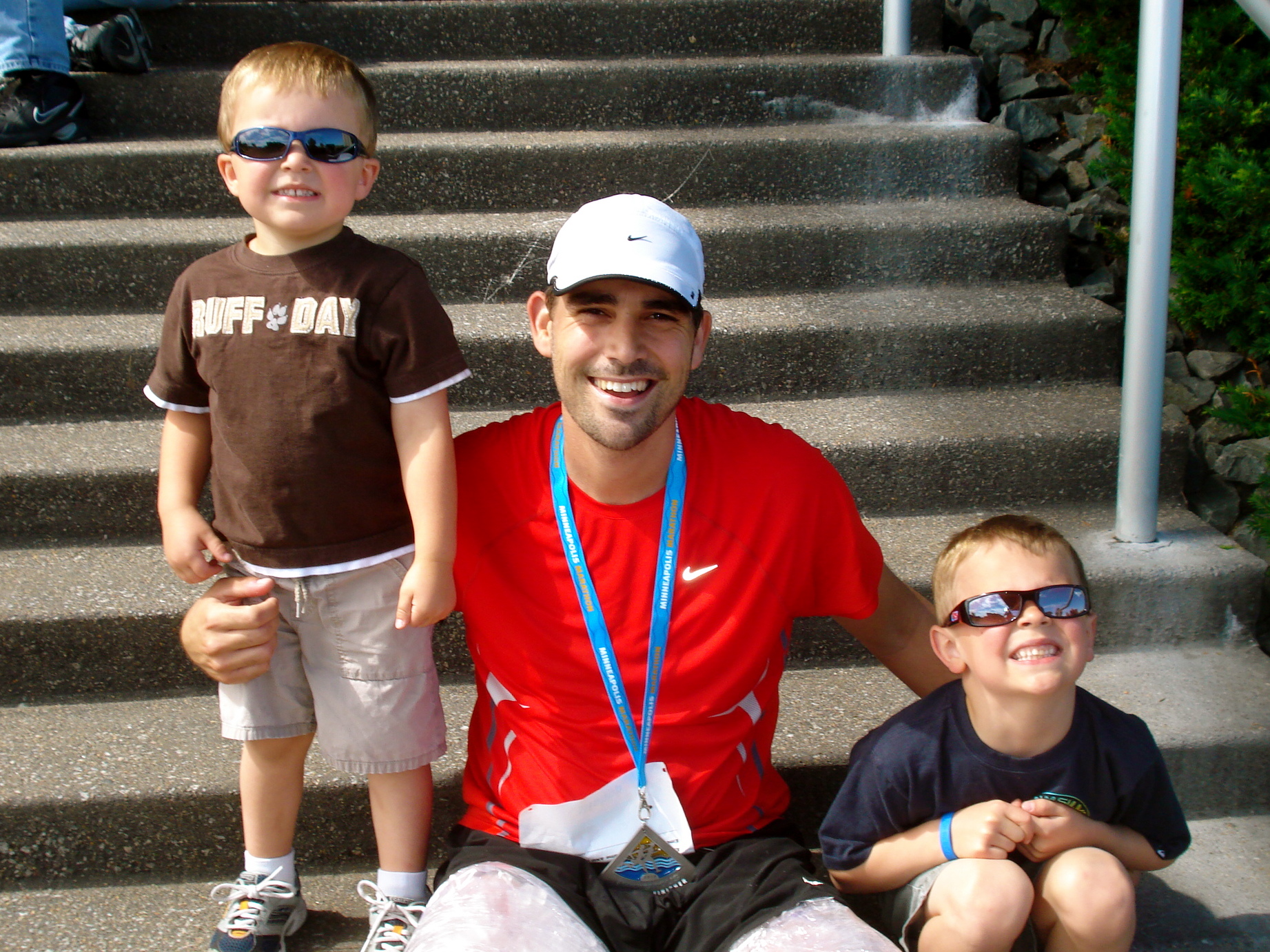 Dad was busy too. He completed his 2nd marathon! He flew up to Minneapolis and hung out with his sister and her family. Here he is at the end of the race with our adorable nephews who met him at the finish line…
