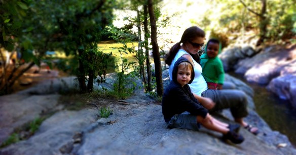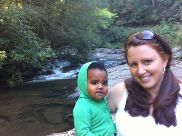 We made our way to North Georgia for a family day trip and picnic. We had a fun time together, but I have to admit, the storybook picnic experience is not realistic with a 1 and a 3 year old. It confirmed my belief that 1 and 3 year olds (at least my 1 and 3 year old) need confined and defined eating spaces…or a more chilled out mom who can handle the stress of food chaos. (I really need to relax more, I know.) Thankfully we all managed to eat and enjoyed the pretty scenery. As a bonus, Evyn didn’t choke on the handful of whole grapes she shoved in her mouth while I wasn’t looking (again, confined eating spaces resolve this issue), Nash did manage to step on his sandwich a few times…but we brushed it off so it was it was still edible–though branded with his footprint, and I’m pretty sure most of the smashed food stains will wash out of our great grandmothers quilt that I thought would be pretty to use for our storybook picnic. I know I sound stressed out, but we choose to just laugh at the chaos and the kids loved it. I need more of these fun family days in my life!
