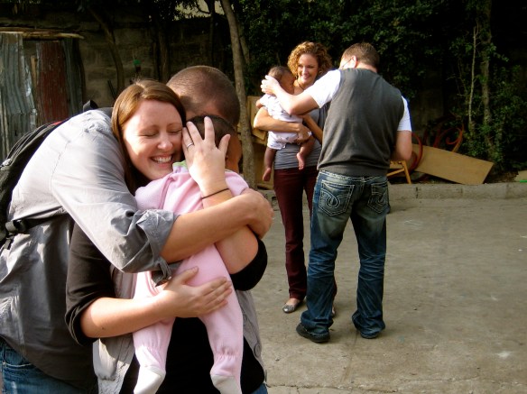 Here we are on Gotcha Day…Us meeting Evyn for the first time and the B family in the background meeting Miss K for the first time…