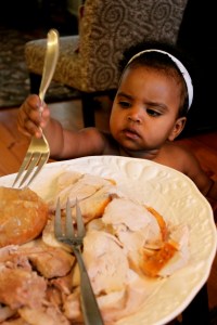 Love that Evyn enjoyed her THanksgiving meal so much! My little man is not so much a fan…but he’s got that serious face so often too it makes me laugh!