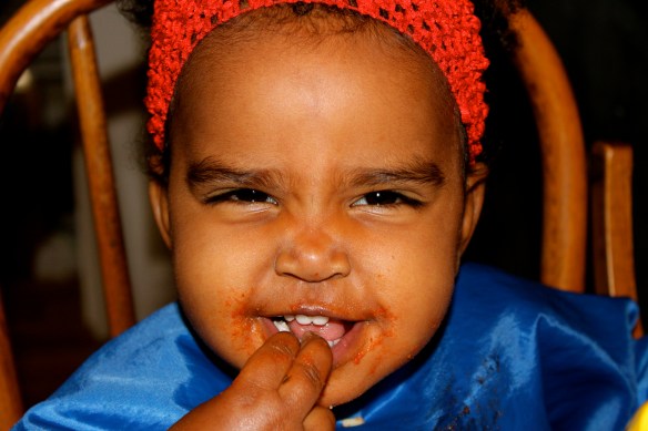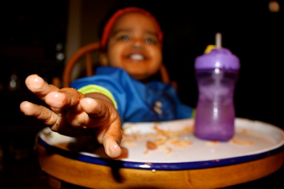 I’m just impressed she’ll use a fork! Berkley will hold one but much prefers his hands to any kind of utensil!
