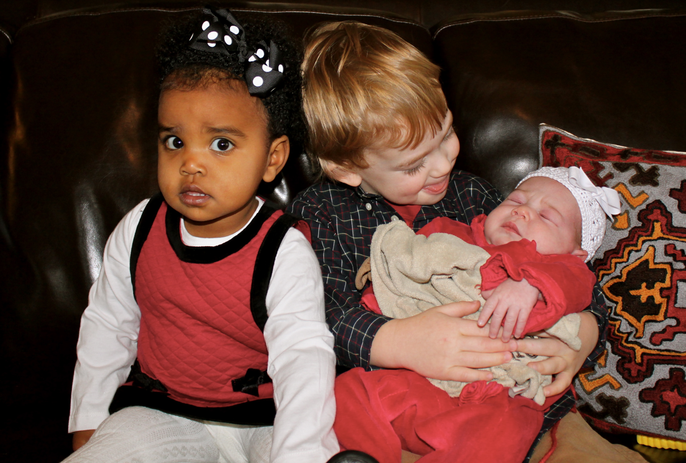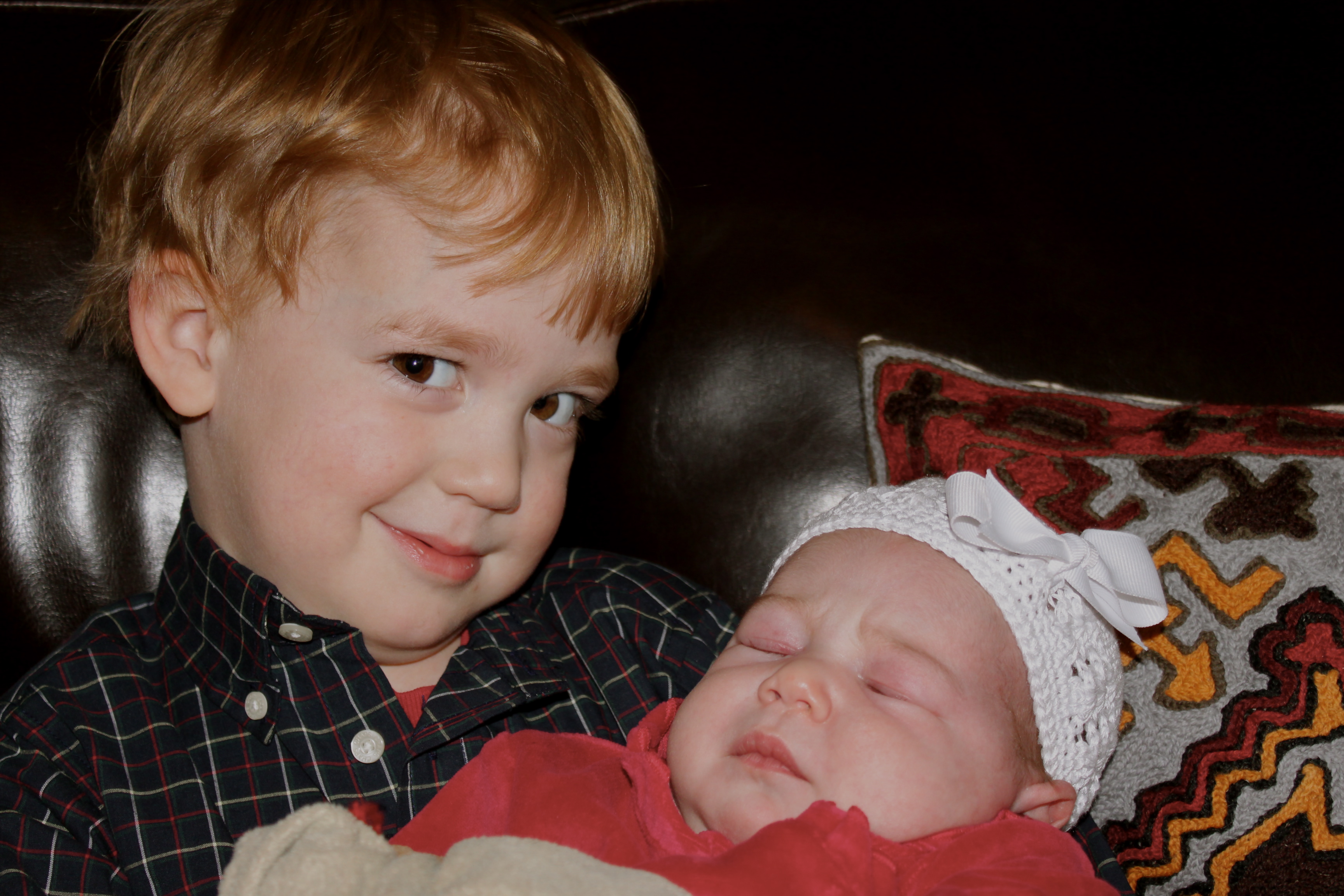 And then the photo session was over. (Evyn LOVES her baby sister, but just didn’t want to hold her in this picture apparently. Not to worry, though it looks like Evyn is about to launch her 3 week old sister across the room I am very much holding on to Meyer. 🙂