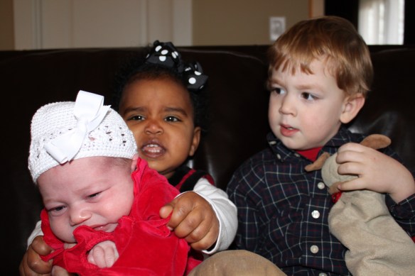 Merry Christmas!! So very much has happened this week, but I will fill you in on those details later. Here are some pictures of the little people dressed in their Christmas best earlier this week for part one of the Christmas festivities. More to come…