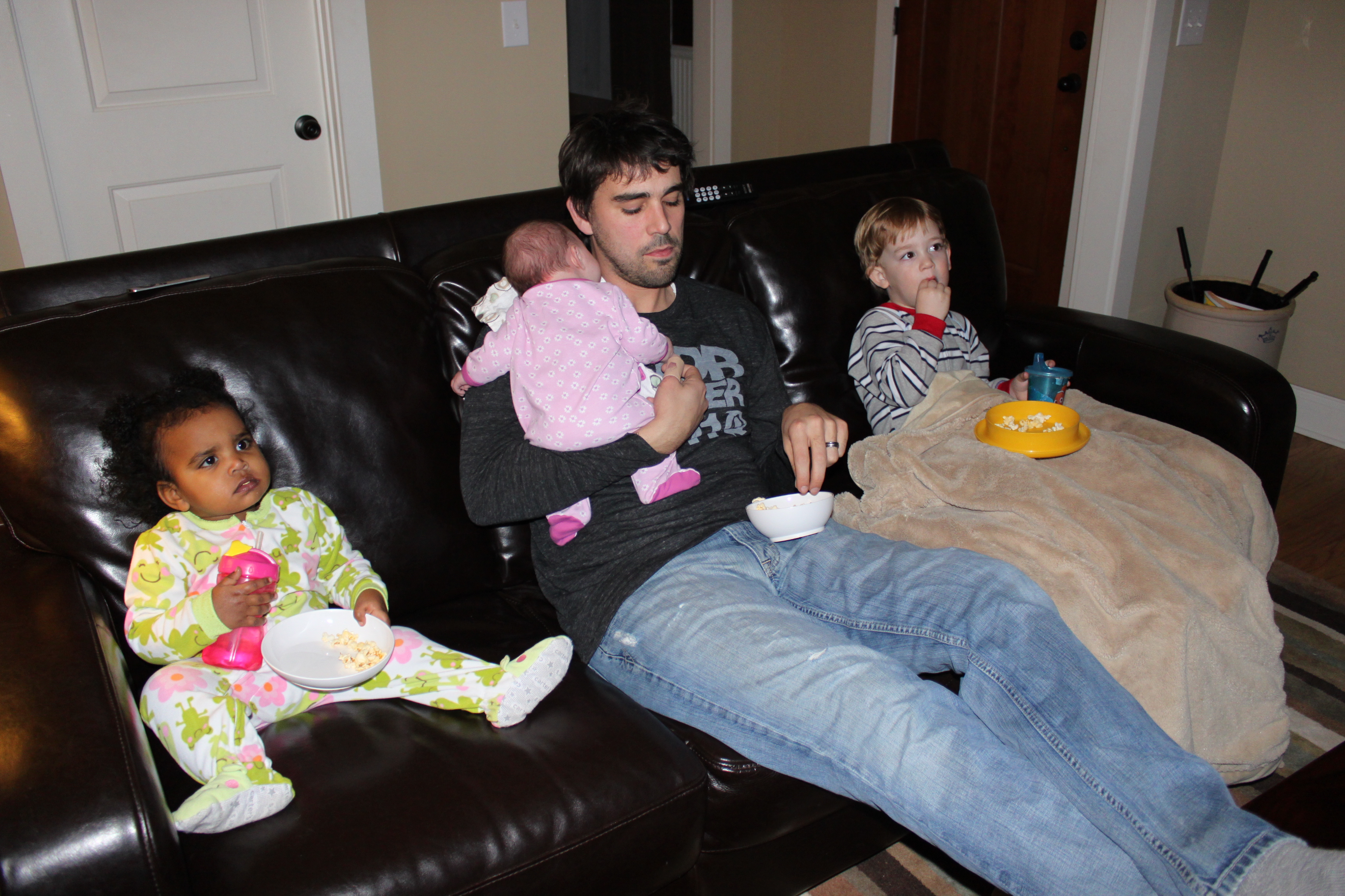 We celebrated one of our last nights at home with the kids first ever “movie + popcorn” nite. (confession, it wasn’t really a movie…just a 30 minute episode of Thomas the Train, same difference, right? This mama couldn’t handle a whole movie, I needed to get to bed!)