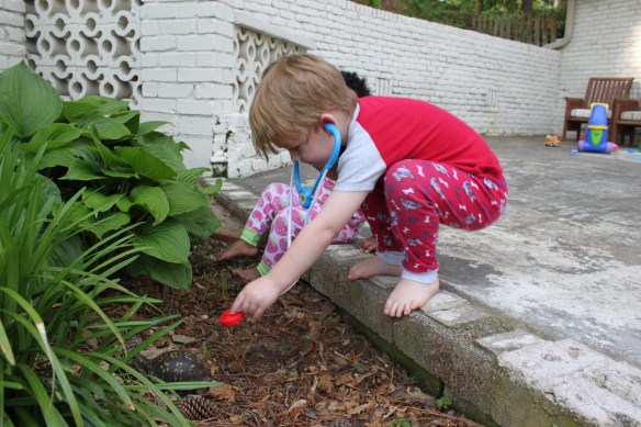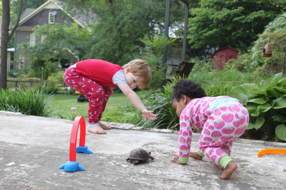 When the kids went down for their afternoon naps I took pity on the turtle and helped him escape into a far back corner of the yard so he could recover from the morning “fun”/”torture” (depends on who you ask!). I’m hopeful we meet again, but I understand if he steers clear of us for awhile. We can be a lot to handle… and have a lot of love to share! 🙂