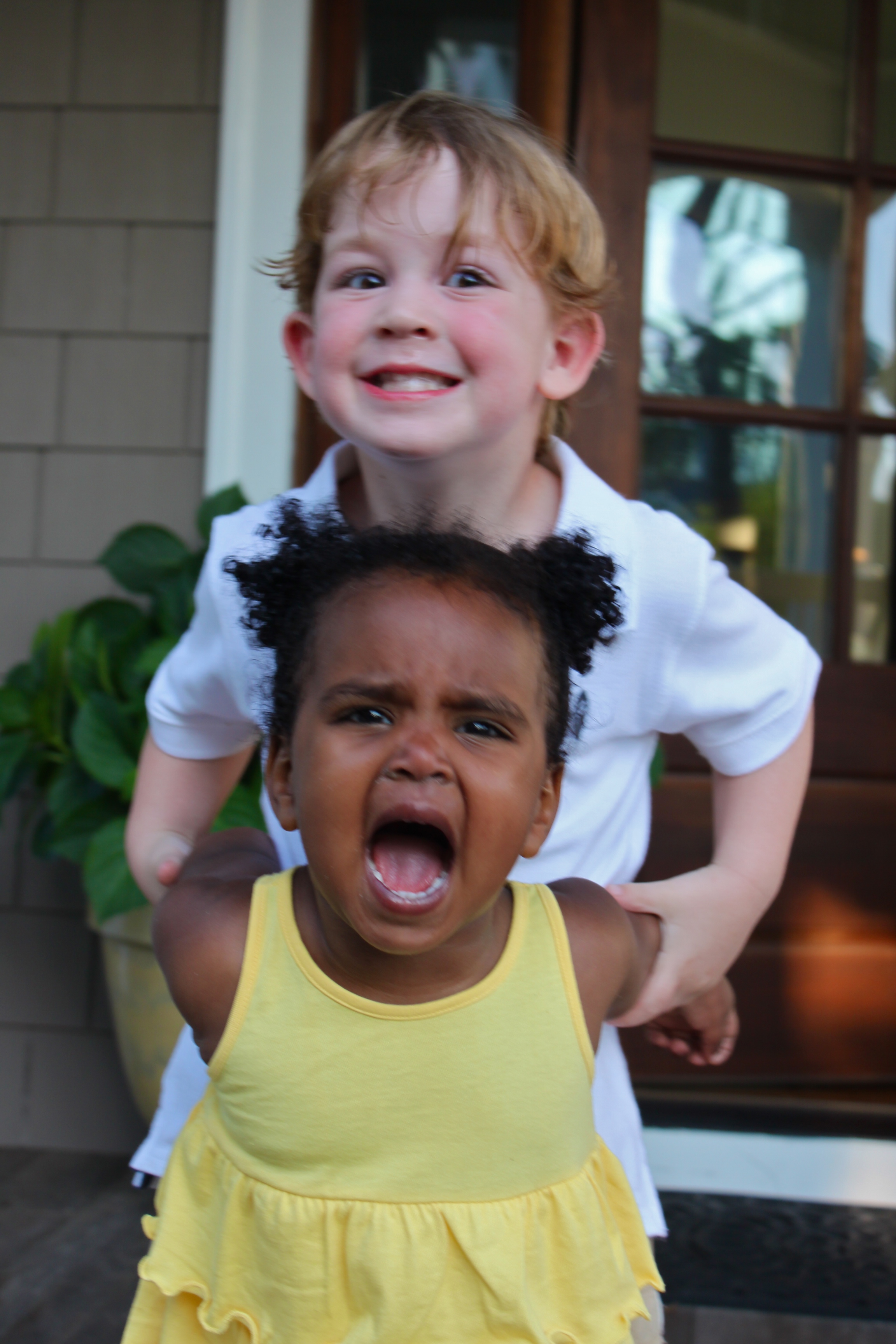 1. That first photo is my favorite. Probably because it is the most natural for brother/sister relationships. Also because while Evyn is clearly screaming for you to help her, you’re taking photos. Hilarious!