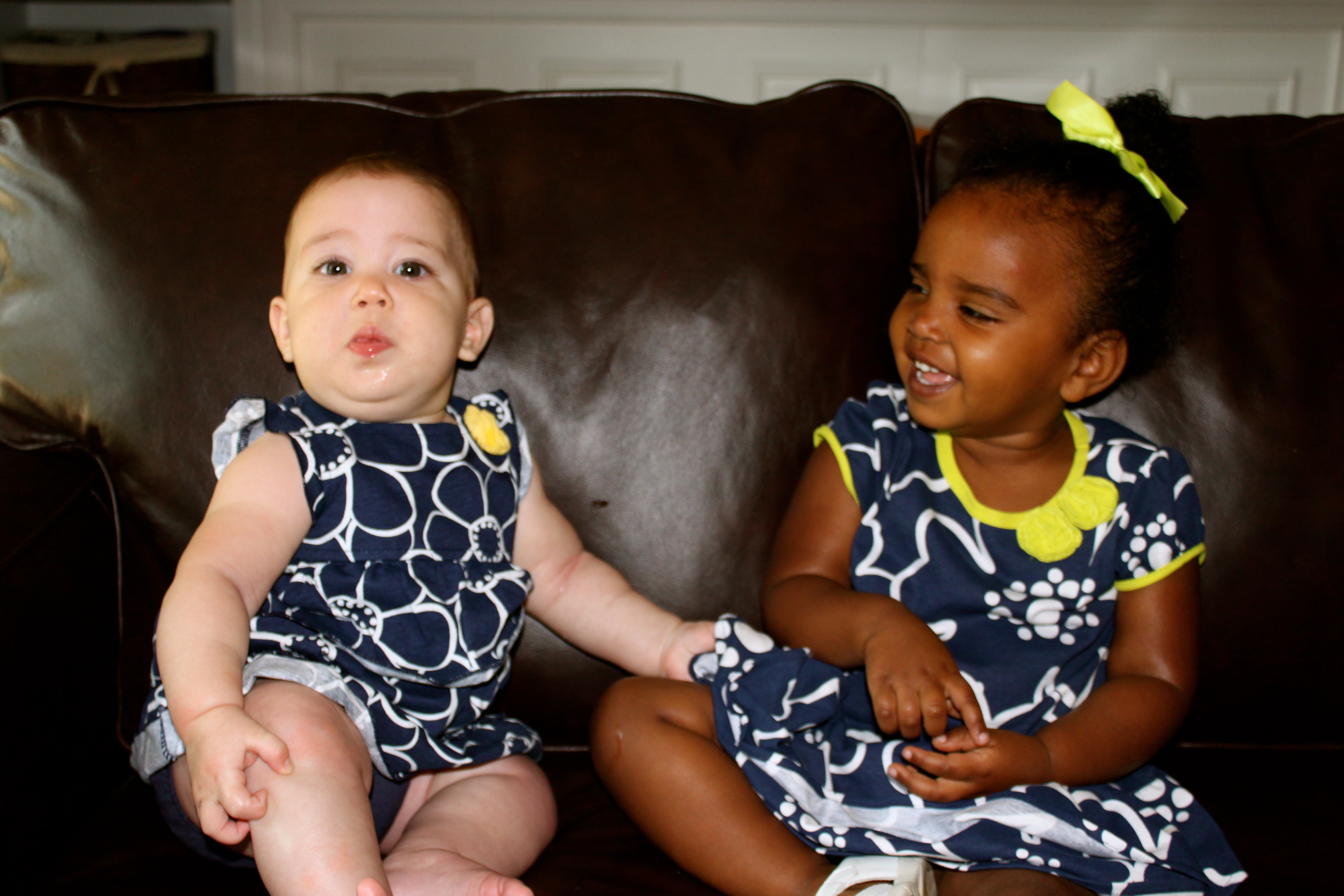 I’m from West Virginia (and I am proud of it!). Though it technically sits south of the Mason Dixon line, in reality it has more northern characteristics than southern. Sweet Tea isn’t a staple at restaurants, smocked dresses (on girls…or boys) aren’t seen with regularity, and “ya’ll” isn’t part of the vocabulary. I’ve lived in the south for almost 13 years and I am sold, hook, line and sinker. I love the South with all my heart. While there are many Southern thangs I still just don’t get like having everything monogramed (though it is growing on me!!) or black eye peas and collard greens for supper, one thing I DO love is when mama’s dress their daughters alike. Bless my heart, I think sisters dressed the same is plain adorable! ๐Ÿ™‚ ย It’s about as Southern as pimento cheese and fried chicken on Sunday afternoon andย I just love it!