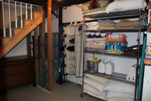 the back corner is where they are creating the build in bunk bed... behind that is storage. This is where the old storage doors were located...now the doors are on a different wall. You can also see how they exposed the duct work. I think they are leaving it like that.