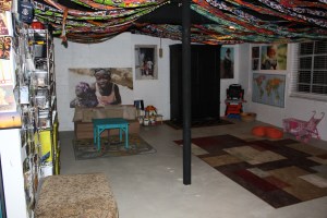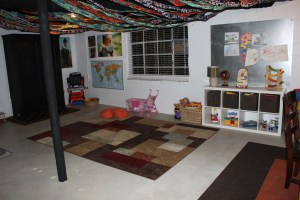 the play area. That's torn strips of fabric from Mali Africa hung on the ceiling. You do what ya can with what ya got! 🙂