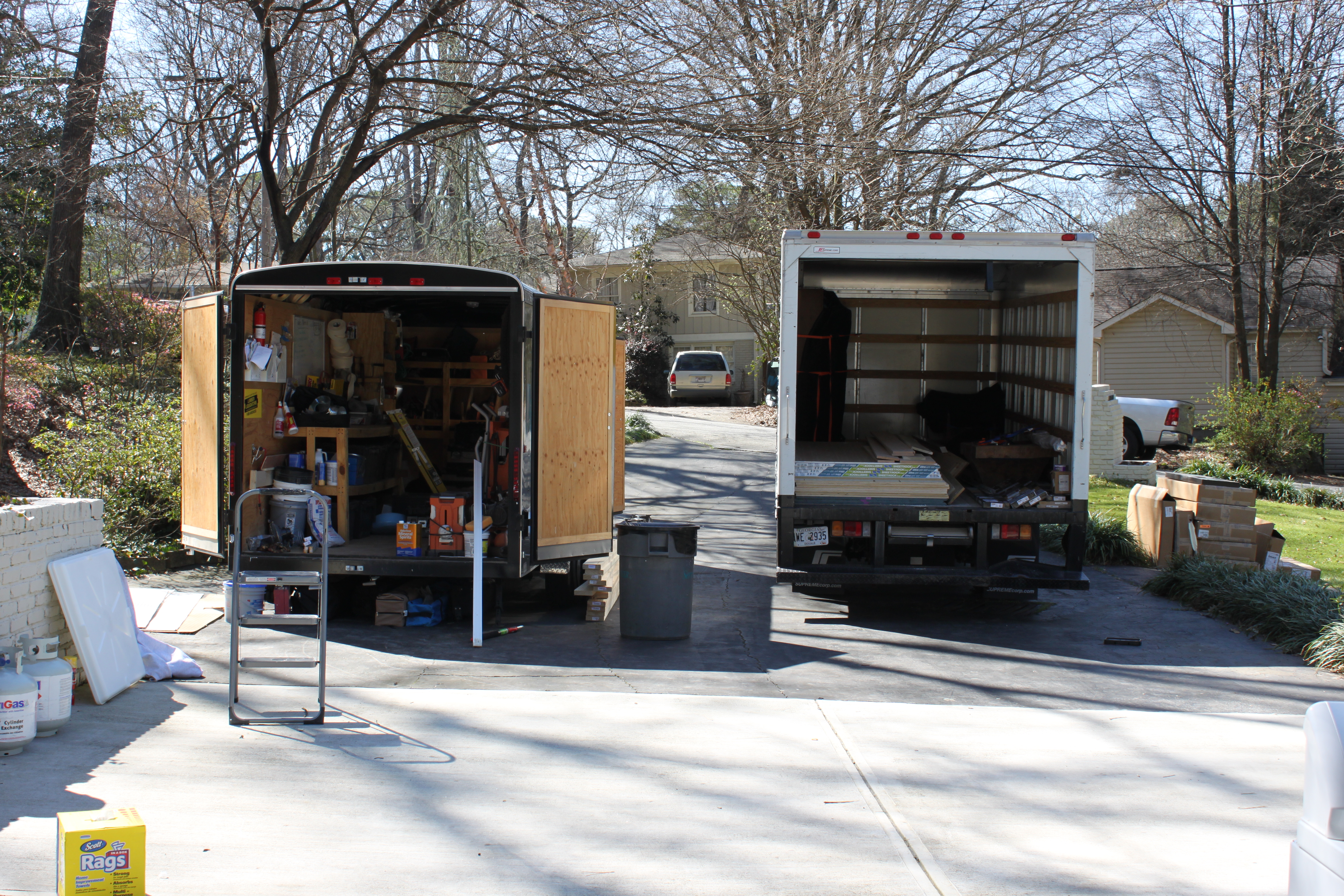 Our garage...where everything from the old basement was piled up! Looks like I have some major work to do next week!