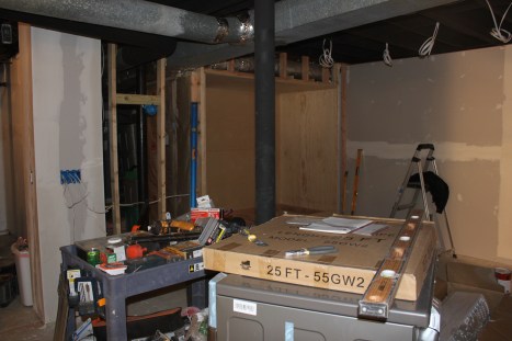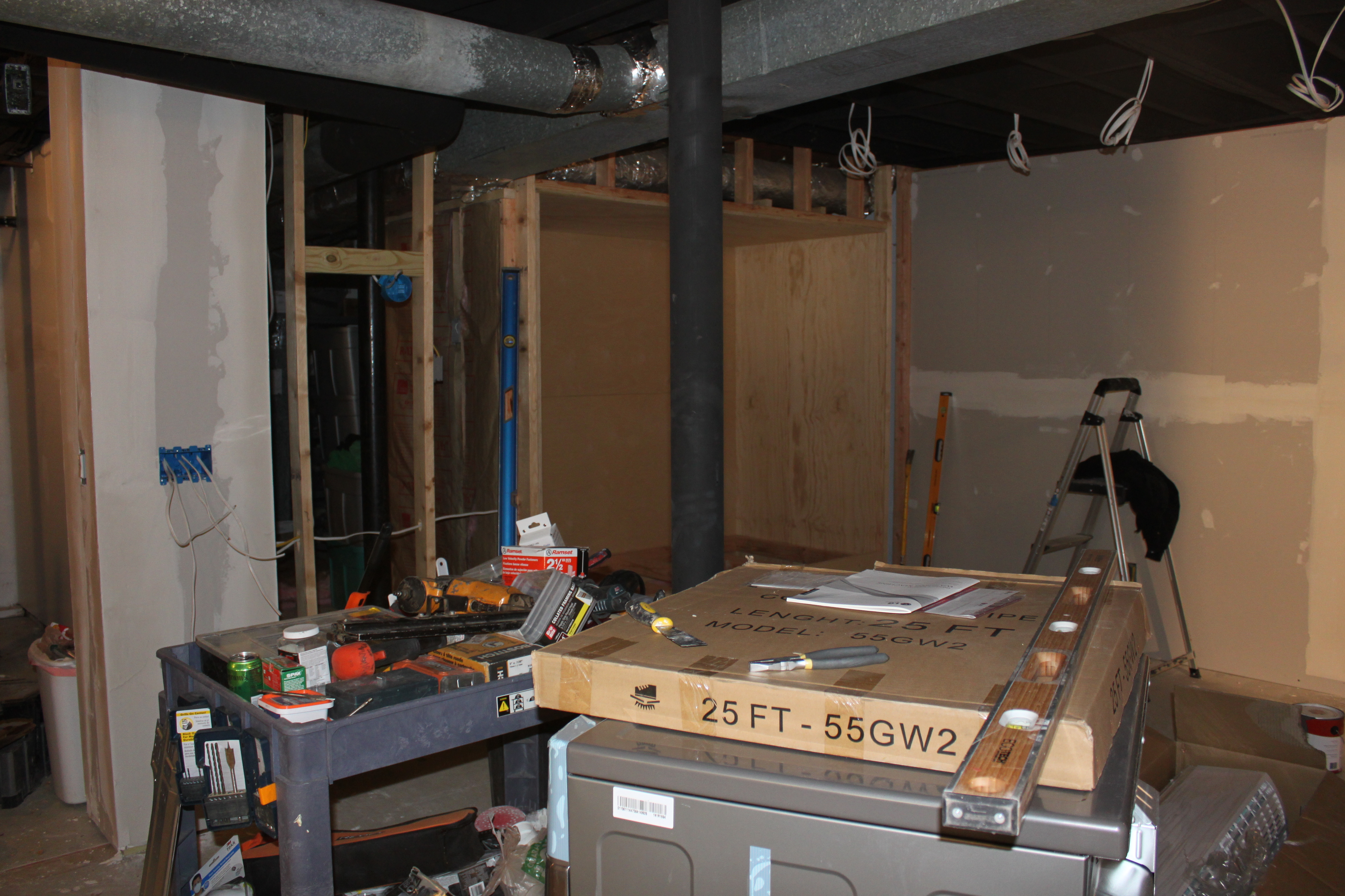 Building out the frame/walls for the laundry nook. Glad that my washer and dryer won't be out in the middle of everything anymore!