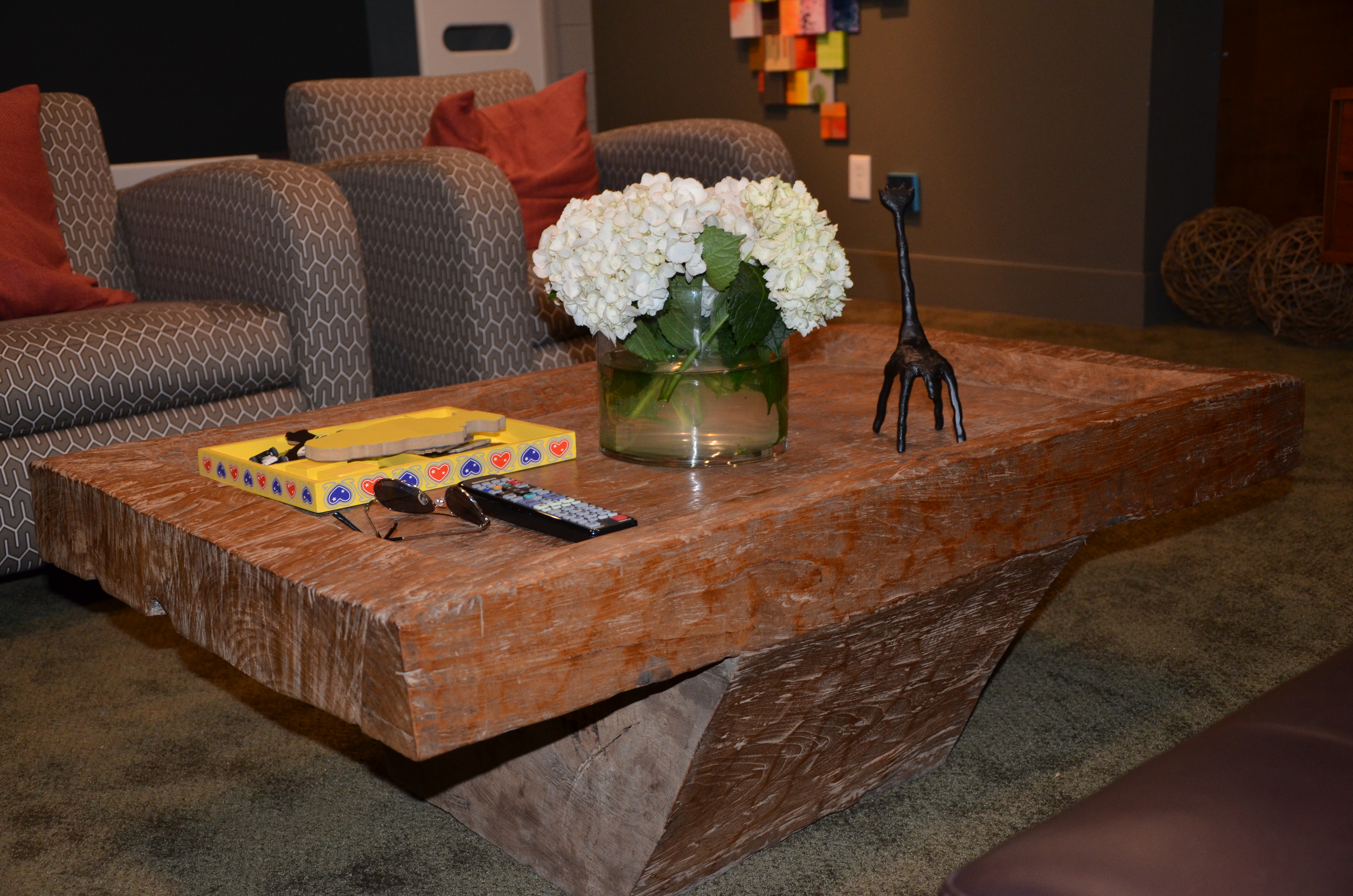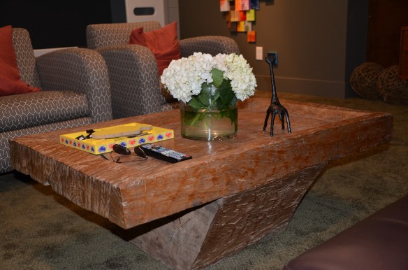 My FAVORITE part of the room. This is an antique table from Brazil. It is an old wash table (there is a hole in the center) and it is made out of a single piece of wood. it’s amazing.