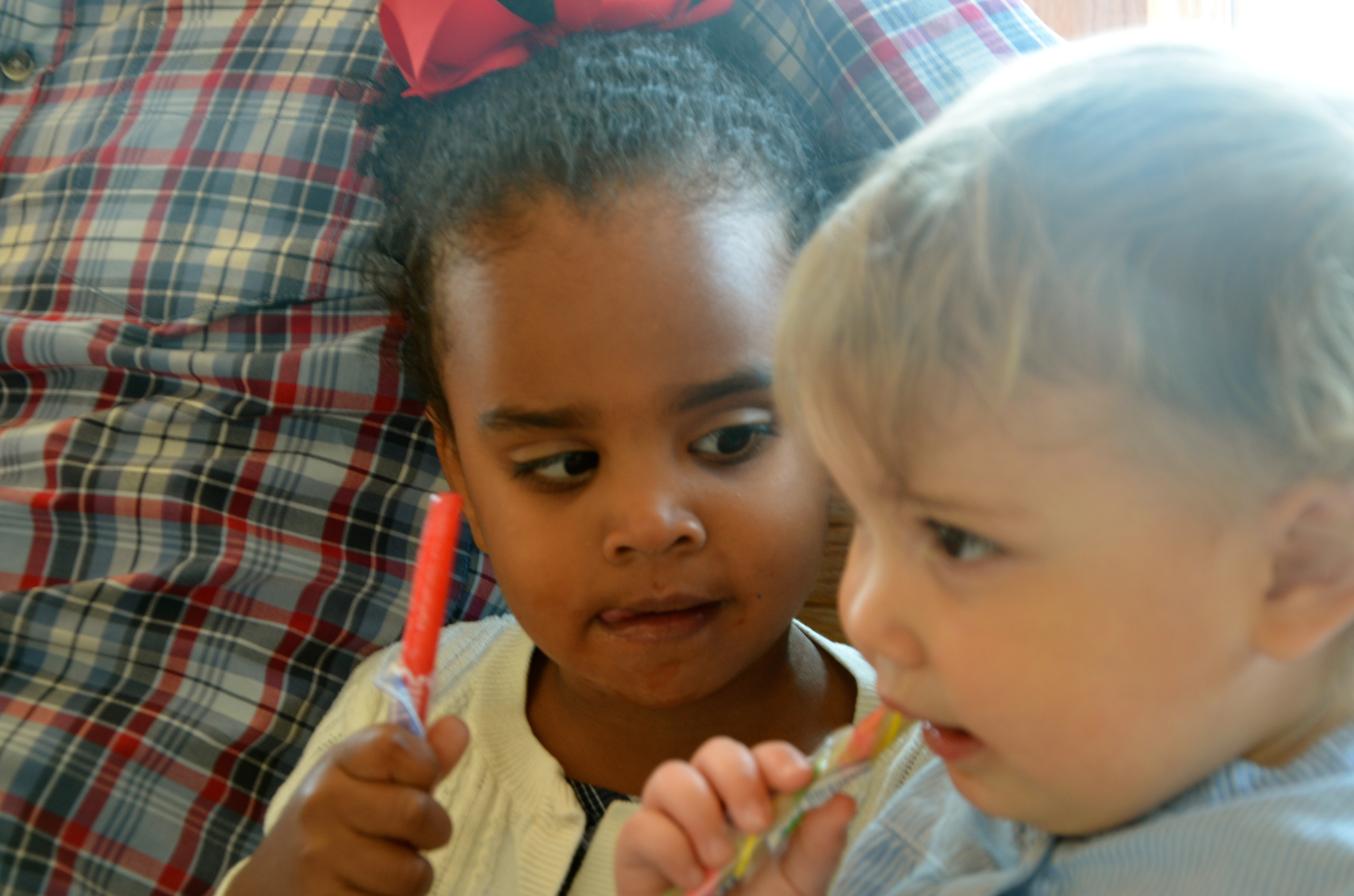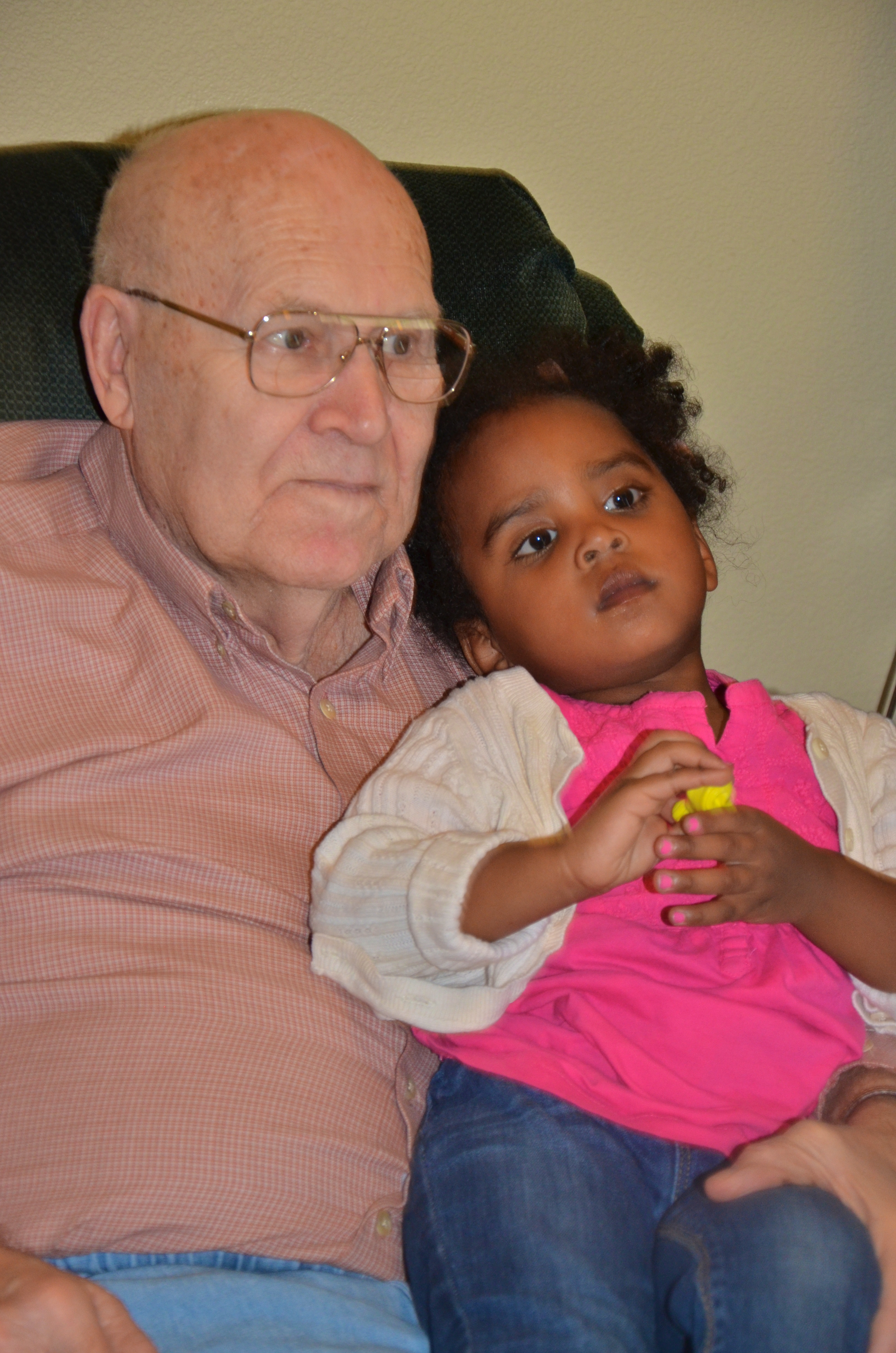 Evyn is such a little cuddle bug and let Vern hold her and answered all his questions. at one point he said, “Her hair is fluffy. I like it.”