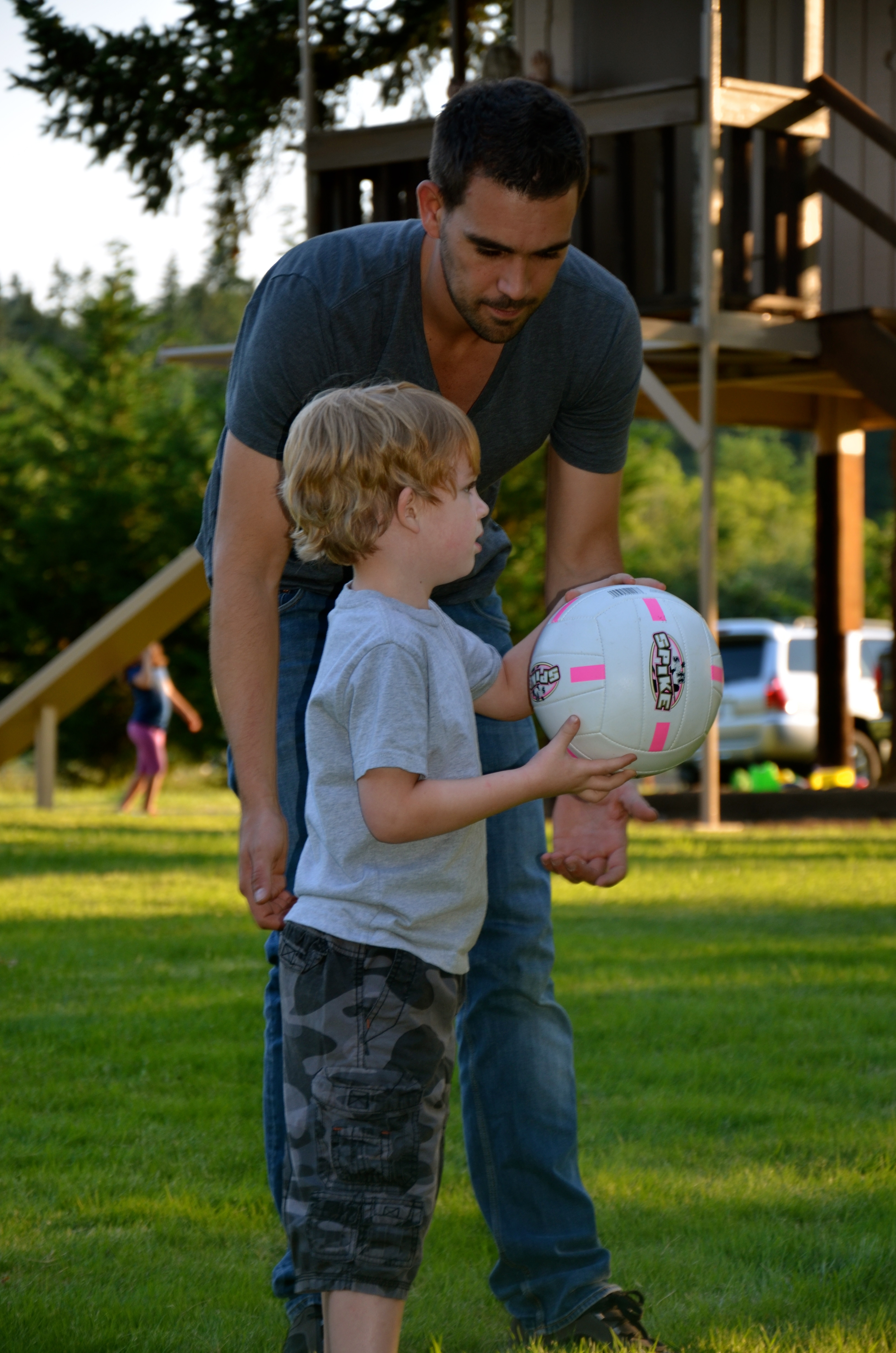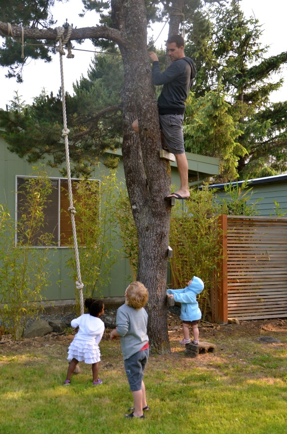 So the lessons learned? Either Dad needs to rake the grass after mowing, or Evyn shouldn’t roll down the hill. I like the idea of the rake.