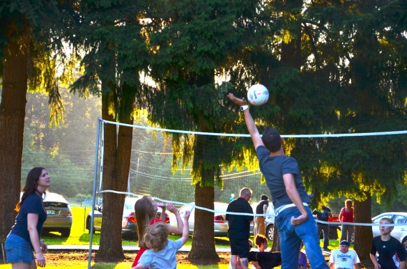 The second half of our day was spent with family at Bryson’s aunt and uncle’s home. They have a beautiful piece of land and know how to host a fun party. Tons of people, volley ball, skeet shooting, fired turkey, hot homemade french fries (yes!!), covered dish heaven, creek playing, treehouse climbing, family and fireworks. The kids had a blast!