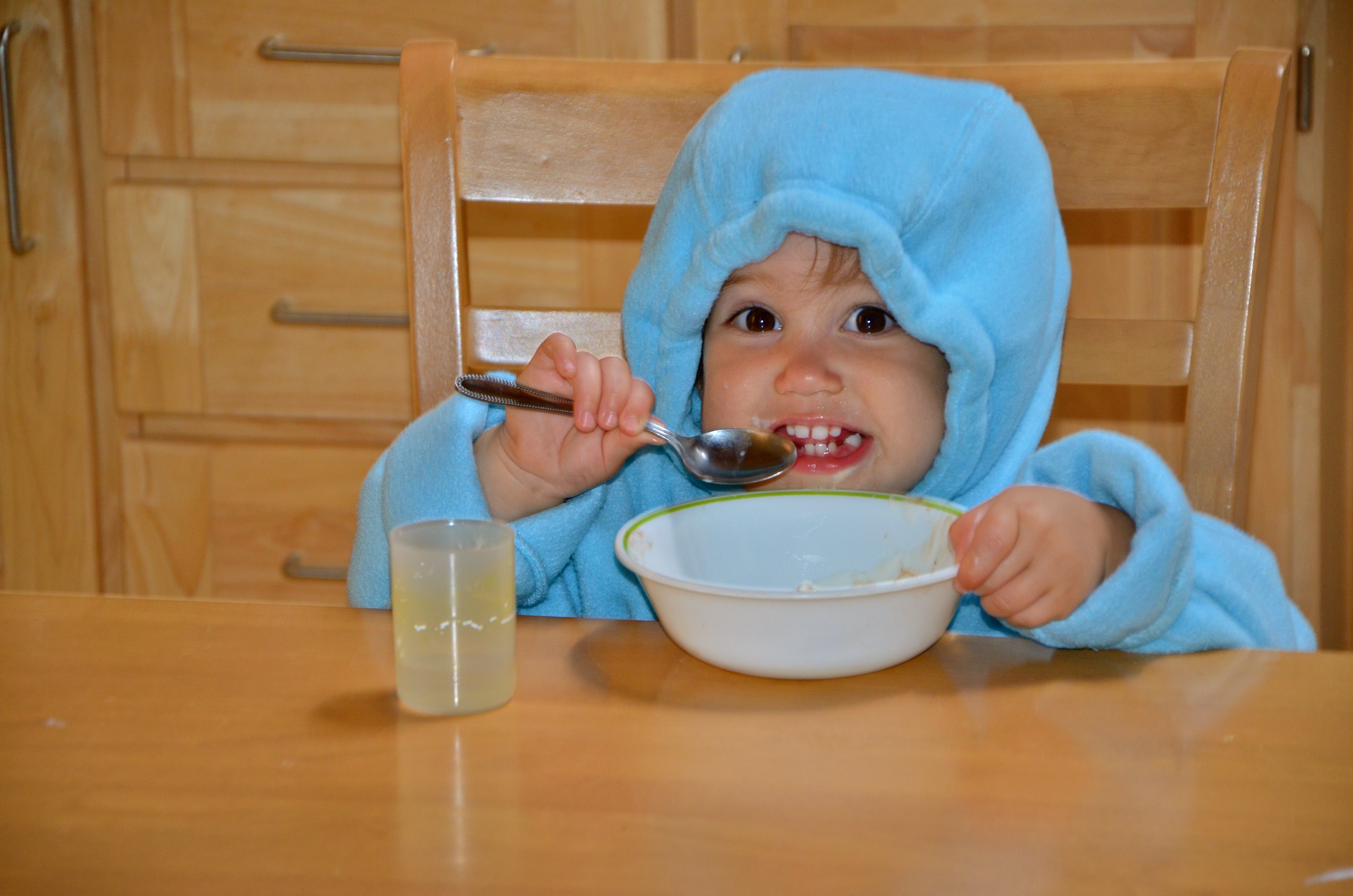 It was such a beautiful night out that I let the kids play an hour past bedtime. But when I called them inside for bedtime this is how Evyn rolled in..