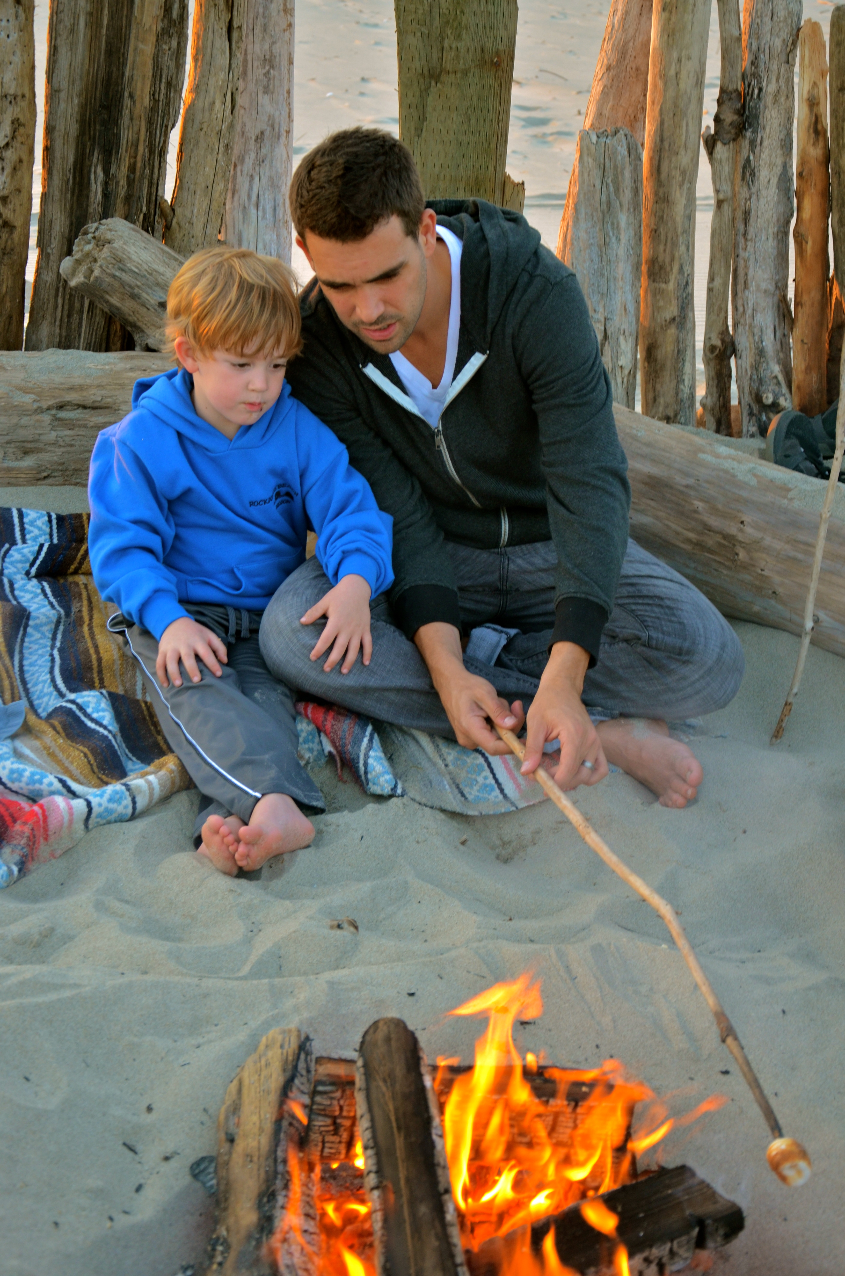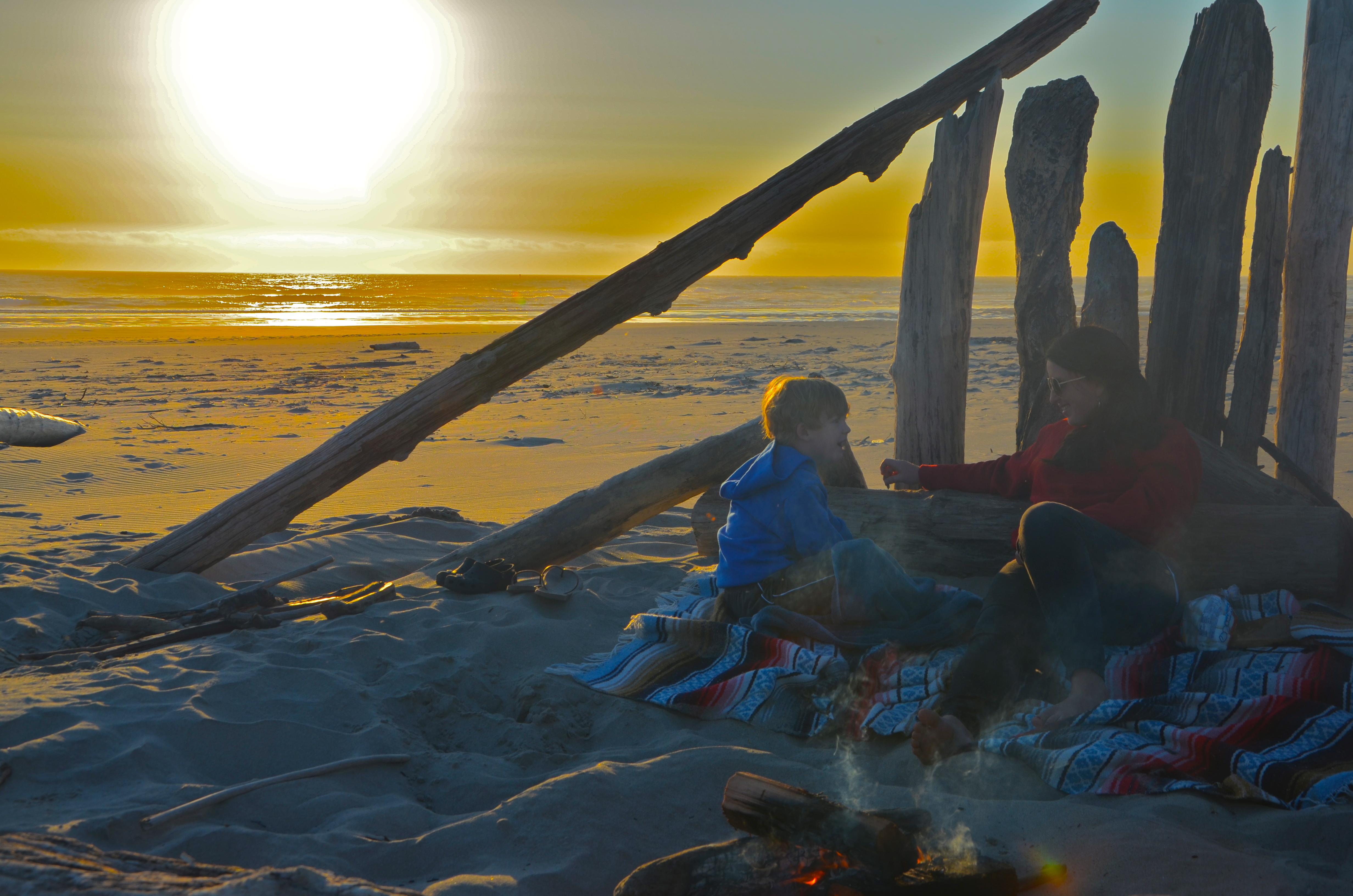 What I love about the beach in Oregon is, it’s cold. A no-swimsuit-needed beach…yes! 🙂 No, it’s not a nudist beach…its just way too cold (even in July!) to wear a swimsuit! Throw on your your newly purchased sweatshirt from the nearby beach town and head to the beach. It’s perfect weather for building sandcastles, kite flying and seashell collecting. No sweating, no sun burning, no melting away in the sun! But best of all is campfires on the beach as the sun goes slowly down. I love fires on the beach! Bryson and I made a fire on the beach with Nash and he loved it as much as I do! What’s not to love?!