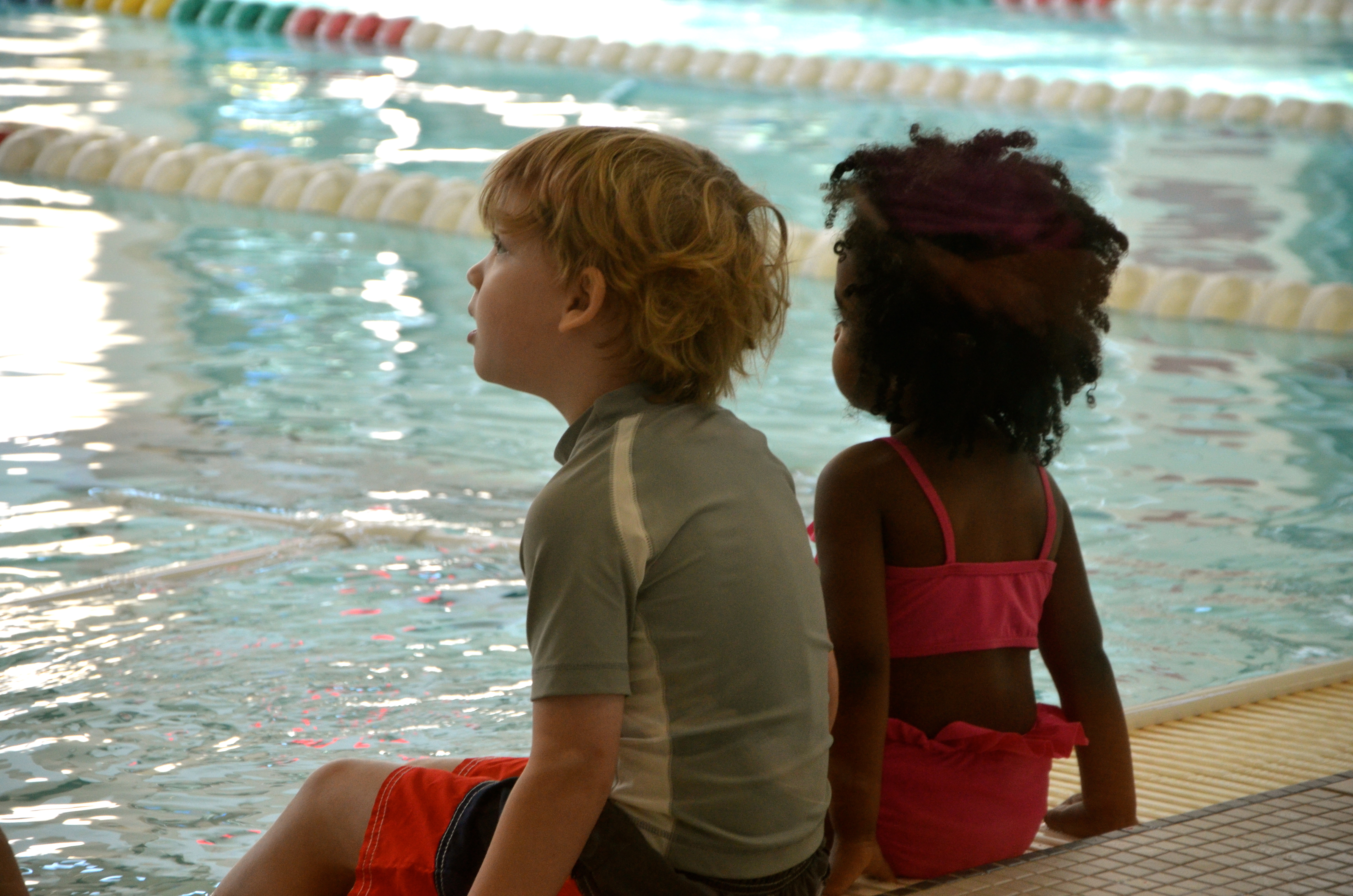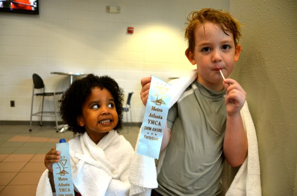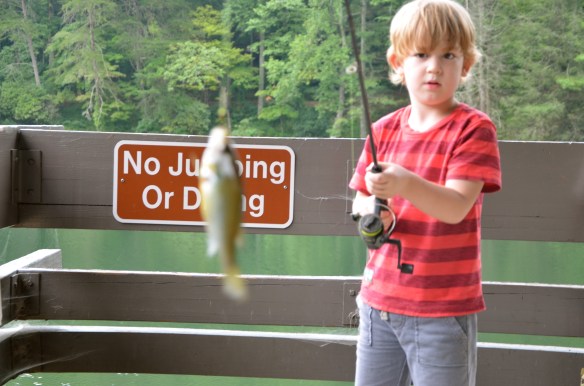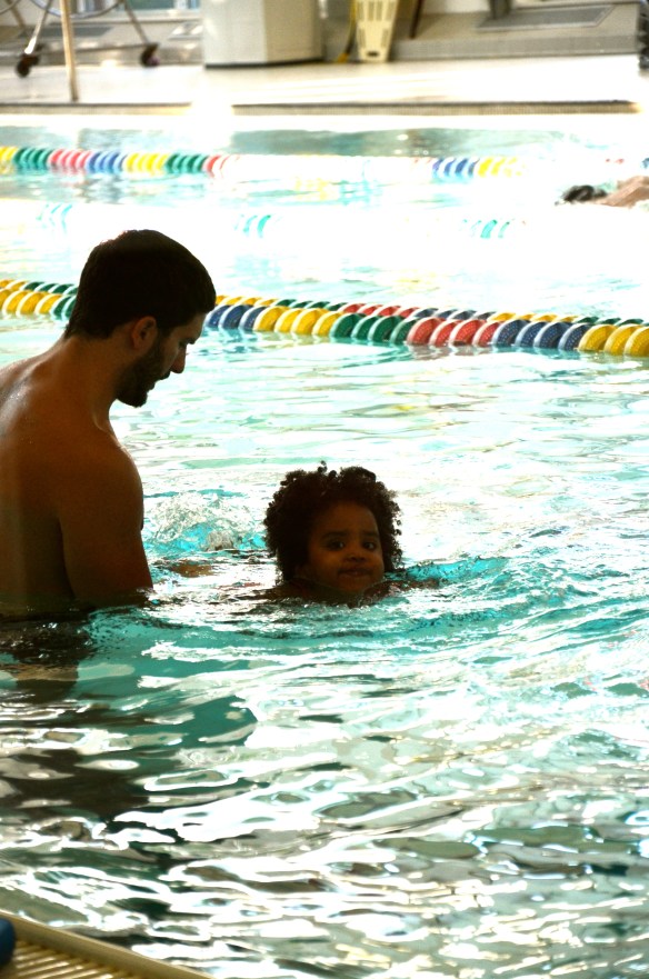 We finally got a couple weeks of swimming lessons in–at the end of summer. Better late than never. All in all, they did great. Evyn was fearless, but didn’t like getting her hair wet or messed up. Nash was so tall that the swim instructor had to take him down to the deep end of the pool so he would have to put his head under the water. I love my silly fish.