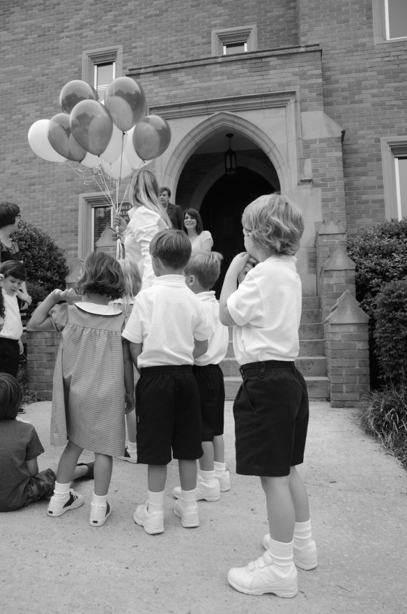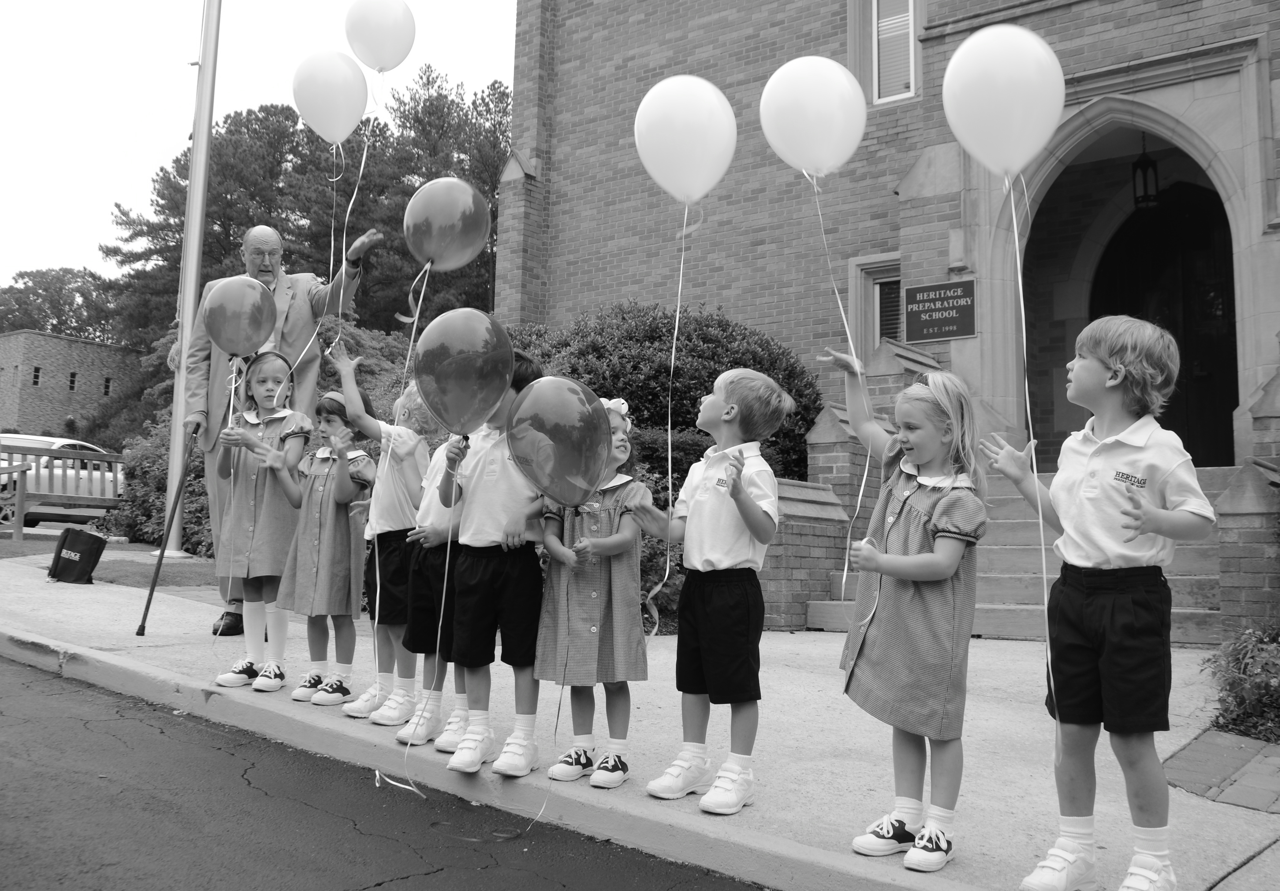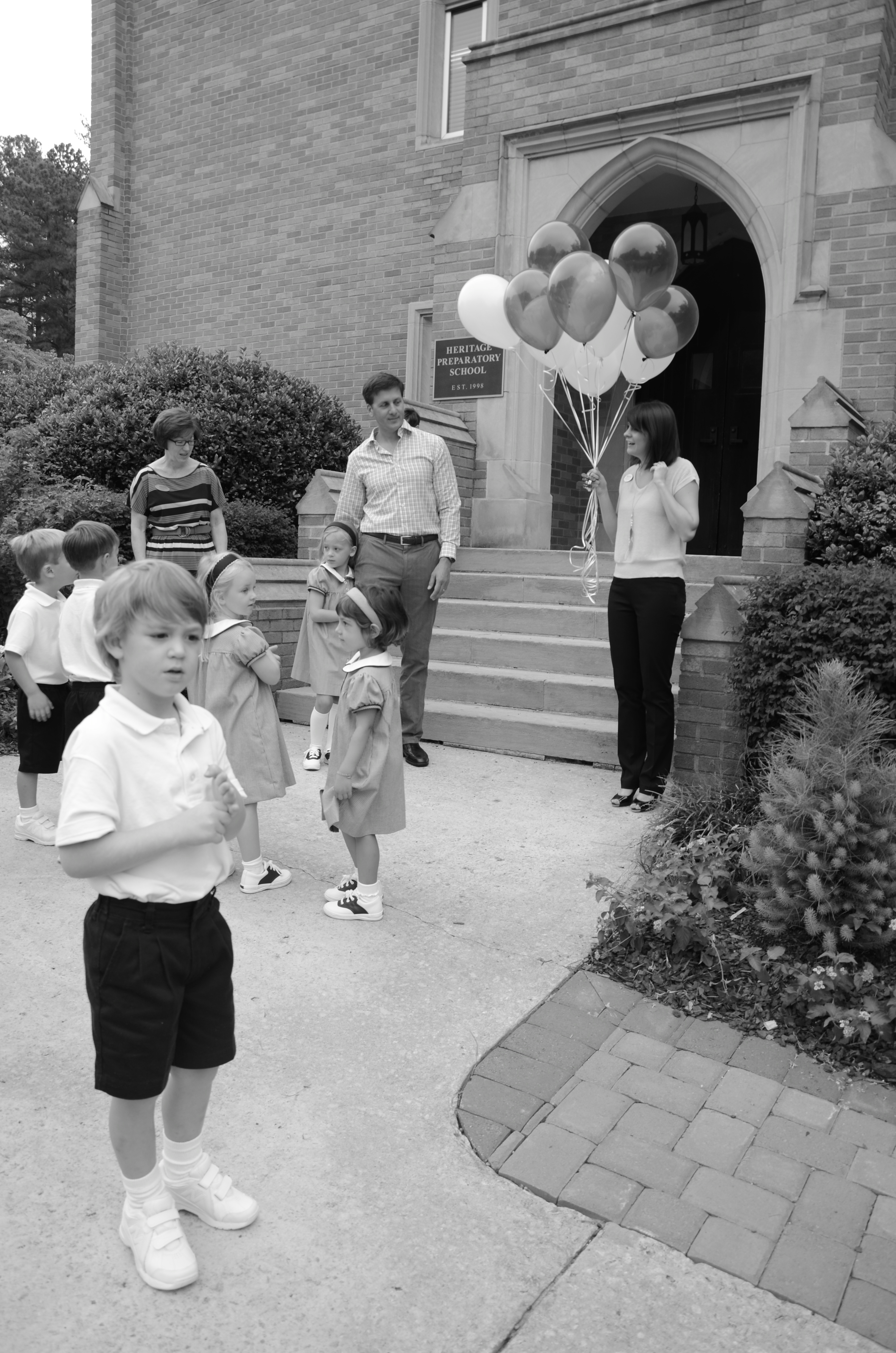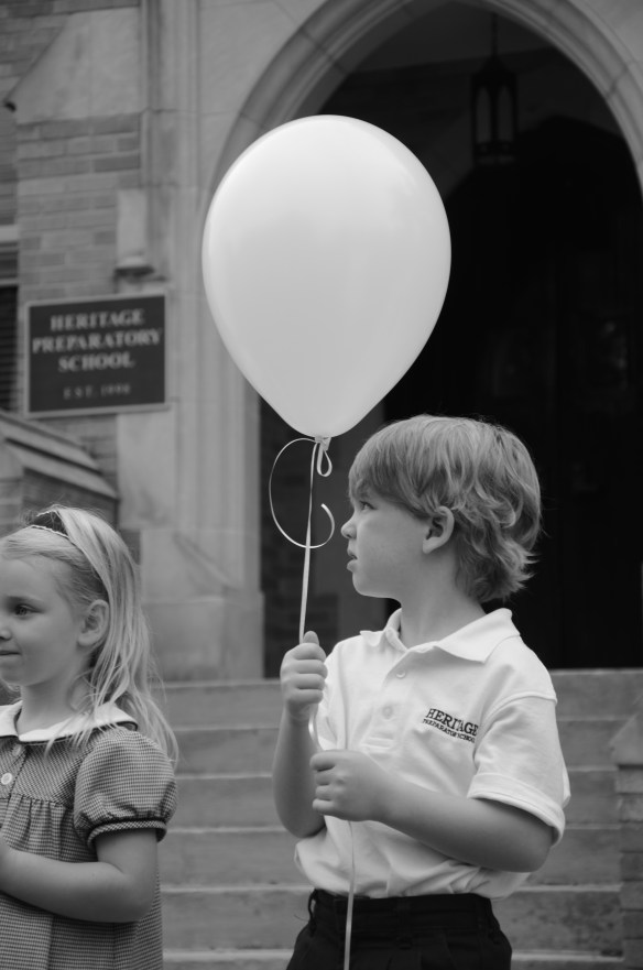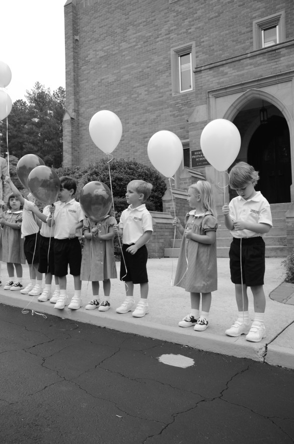 Gathering in front of the school with his class for the Balloon Ceremony…
