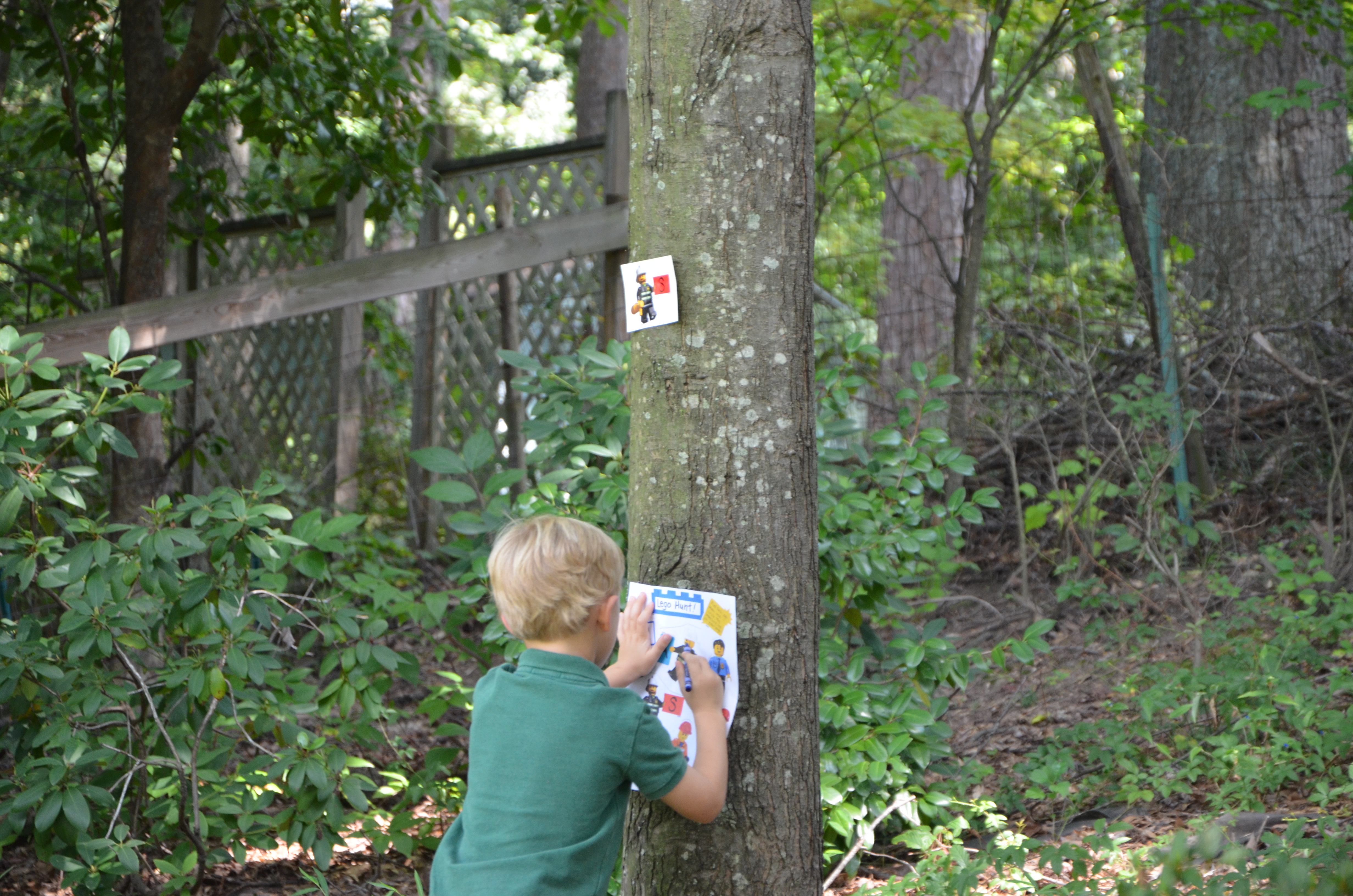 Lego scavenger hunt! I made sheets with pictures of 10 different Lego men for each of the kids. I then hid the Lego men around the yard and the kids had to go hunt for them and circle the matching Lego man on their sheet. It was a fun and easy activity.